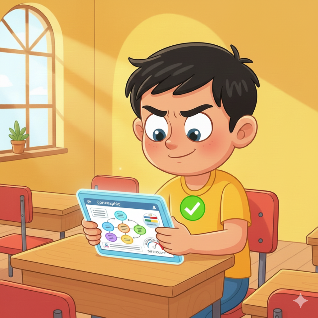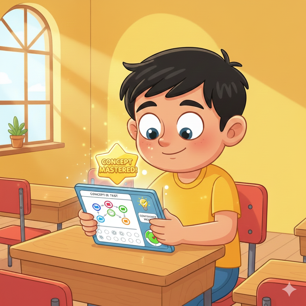 Concept-level tests with adaptive difficulty to measure real understanding.