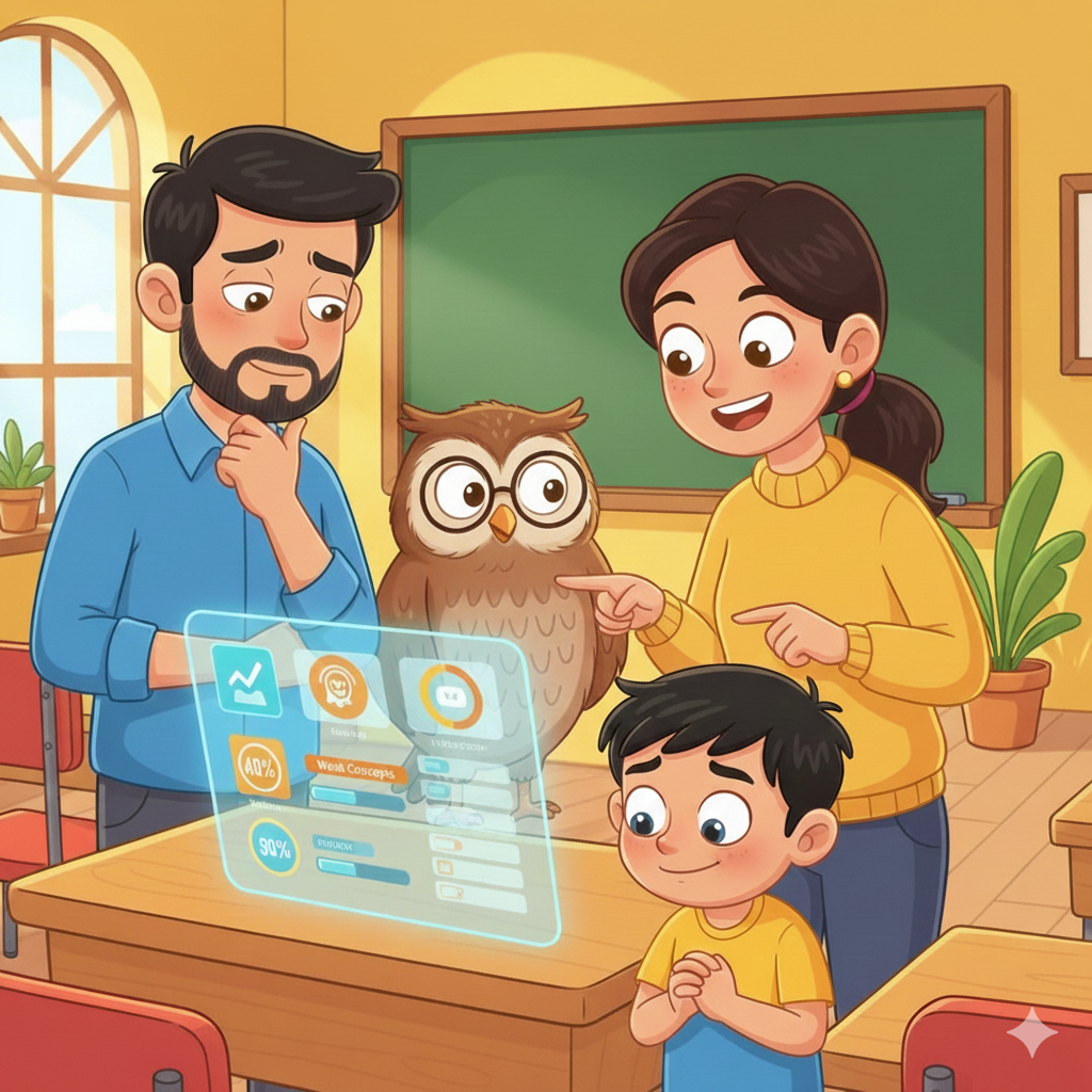 Insightful dashboards for teachers and parents to track progress and gaps.